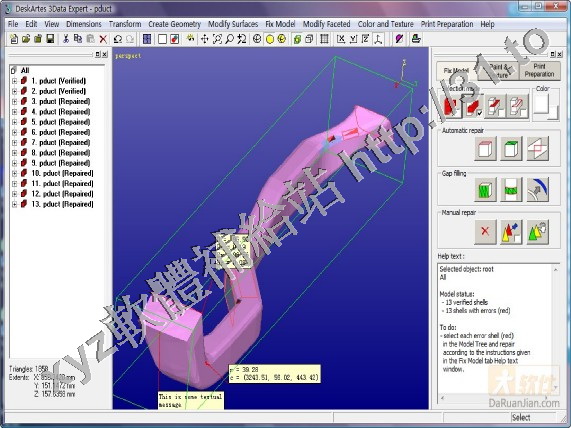 3Data Expert是一款適用於Rapid Prototyping針對3D CAD文件進行修復、轉換和操作的