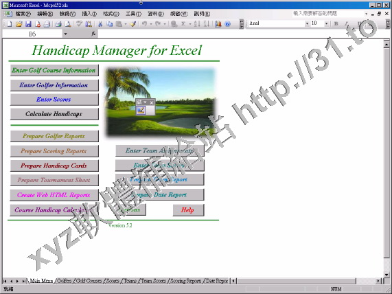 Handicap Manager For Excel v5.2 英文正式版(用於高爾夫運動的統計及維護軟體)