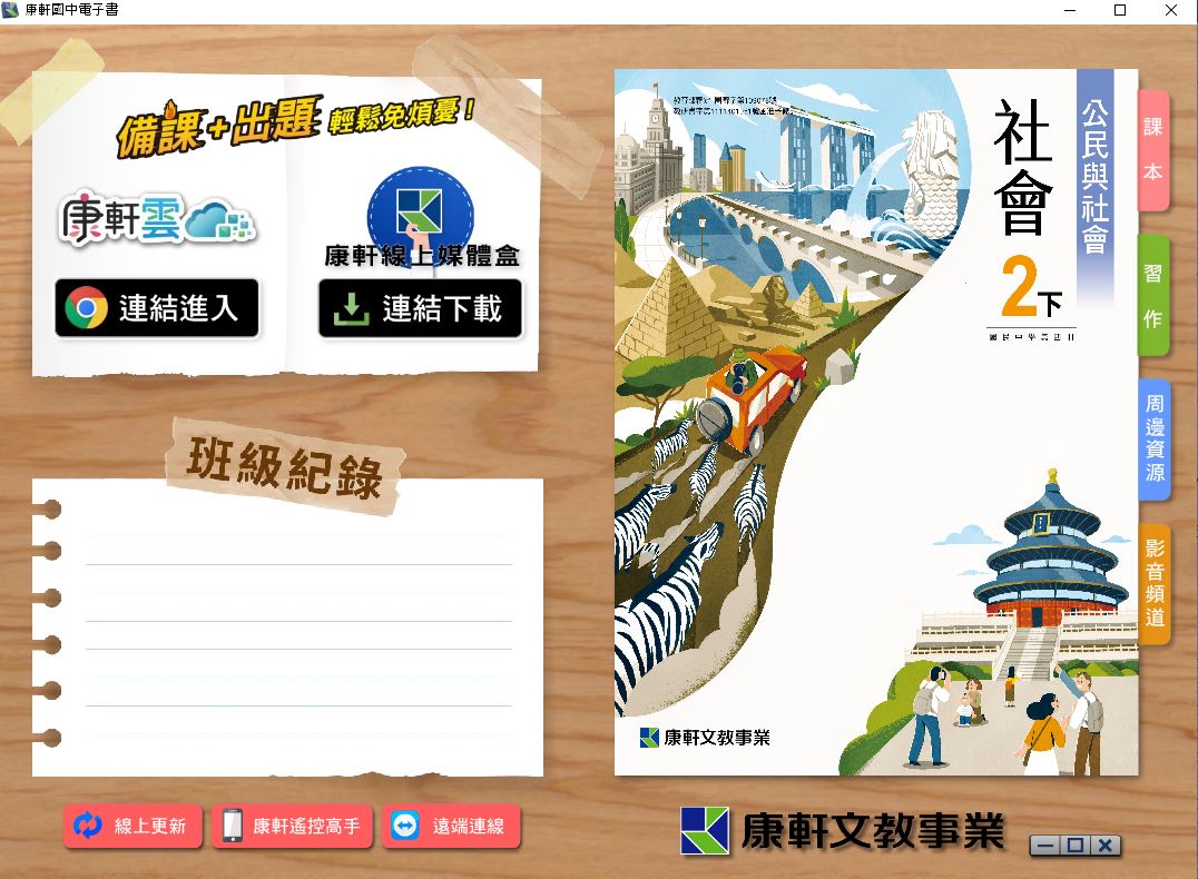 111學年下學期 國中 康軒版 公民電子書 2年級(含課本、習作含解答、教學資源)教學光碟