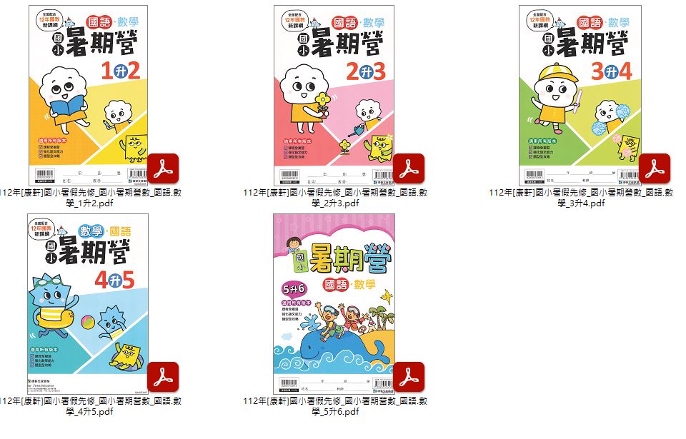112年國小 暑假先修 國語、數學 [明霖]快樂國數館 + [南一]一起FUN暑假 + [康軒]國小暑期營數 + [奇鼎]國數複習營數學 先修教材光碟