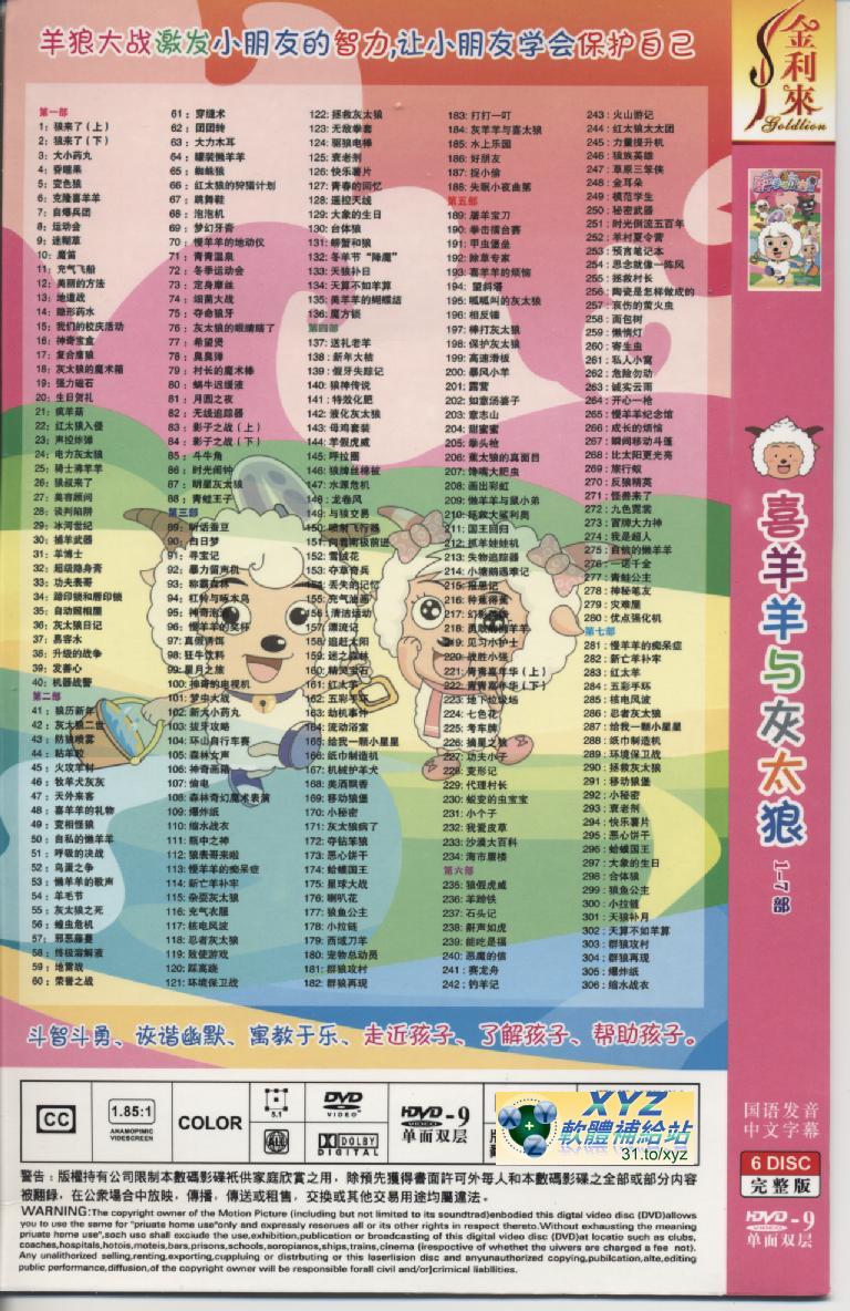 片名:喜羊羊與灰太郎 第1-7部 03 137-188集 國語發音 80%繁體中文+20%簡體中文語言字幕