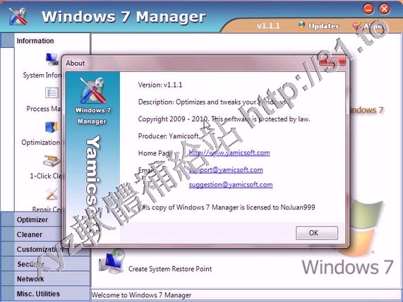 • Yamicsoft Windows 7 Manager v2.0.1 英文正式版(優化和設置 Windows 7 工具軟體)