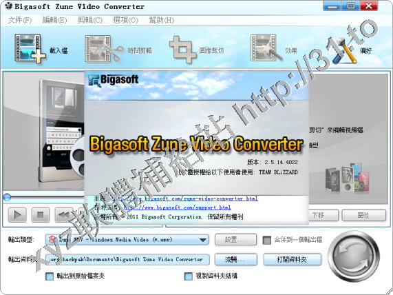 • Bigasoft Zune Video Converter v2.5.14.4022 繁體中文正式版(媒體轉換軟體)
